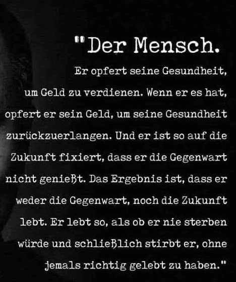 Dann verlieren wir uns in Gedanken, haften an Ideologien und Philosophie, und bleiben verschlossen für neue Erkenntnisse, die zu neuen Lösungen und neuen Lebenskreisen und Situationen führen könnten.
